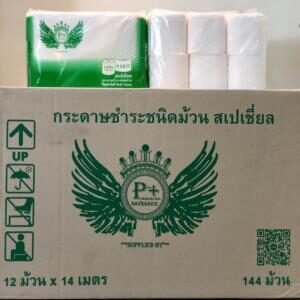 กระดาษชำระม้วนเล็ก P+PLUS Virgin สเปเชี่ยล 144ม้วน/ลัง ยาว 14 เมตร